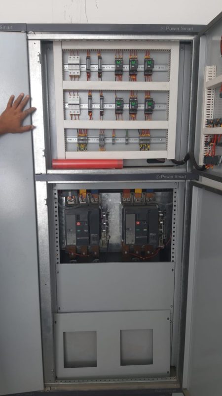 • خيارات التشغيل: اللوحة مزودة بمفاتيح اختيار (Selector Switches) تتيح لك التشغيل الأوتوماتيكي بالكامل، أو التحويل اليدوي (Manual) عند الحاجة للصيانة.